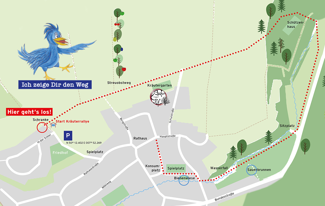 Unser Bucher Kuckuck weist Ihnen dabei den Weg und informiert Sie über zahlreiche Kräuter. Genießen Sie unterwegs das frische Sauerbrunnenwasser und die Ruhe der Natur.
